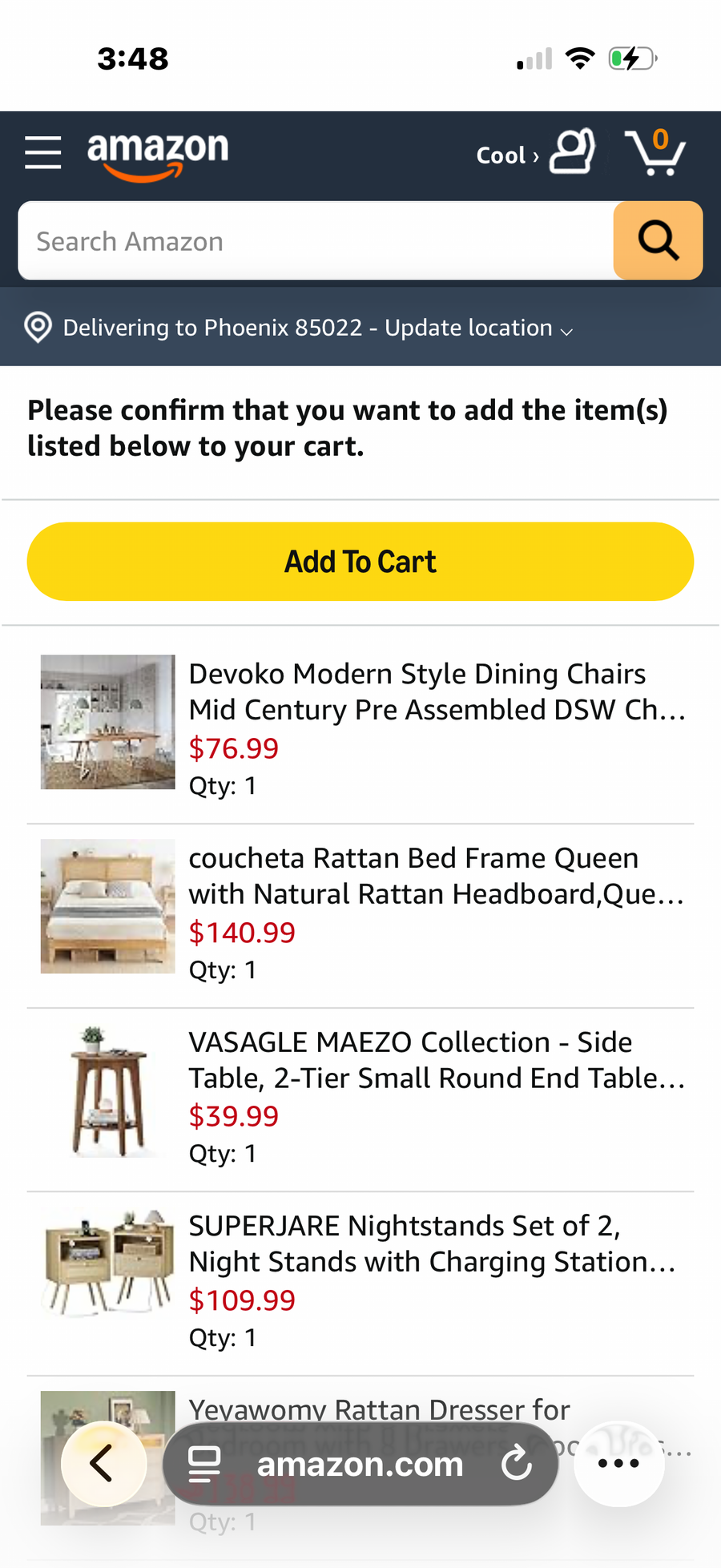 Amazon Add to Cart Preview